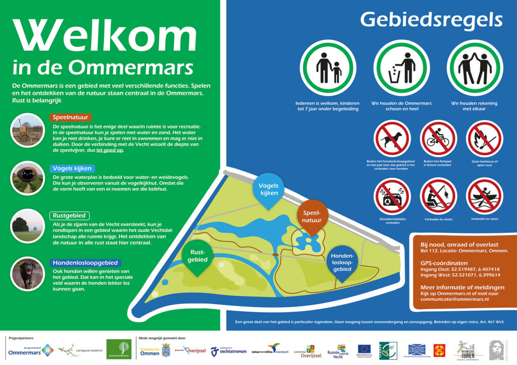 OmmermarsAan de rand van de kern van Ommen en begrensd door de Vecht, het Ommerkanaal en de Varsenerdijk ligt het gebied de Ommermars. Ooit een gemeenschappelijke weide waar tegen vergoeding vee geweid kon worden. Nu een prachtig gebied met een natuurlijk speelterrein, struingebied met glooiende stuifduinen, een waterpartij en een moerasgebied. In het noordelijke deel van het terrein staat het ontdekken van natuur voor jong en oud centraal met een focus op natuur en water. In het zuidelijk deel is ruimte voor natuur en biodiversiteit en in het westelijk deel kan de bezoeker zelf de natuur ontdekken en bewonderen.