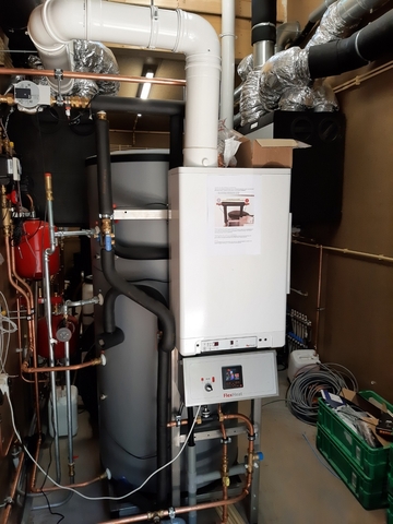 Op dit moment worden er nog een paar zaken afgerond. De binnenkant is nog niet helemaal gereed, dat wordt de komende weken afgerond. Al wel is duidelijk te zien de indrukwekkende hoeveelheid techniek om zo zuinig mogelijk met energie om te gaan.