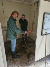 Nadat de afgelopen maanden de helft van het terrein onder water stond, is inmiddels de elektriciteit en de riolering hersteld. De banken bij de kampvuurplaatsen zijn uit het bos gevist en het zwerfvuil wat de Vecht meenam opgeruimd. Nu zien ook de toiletgebouwen er weer blinkend schoon uit. Raad zelf maar wat voor en na is.