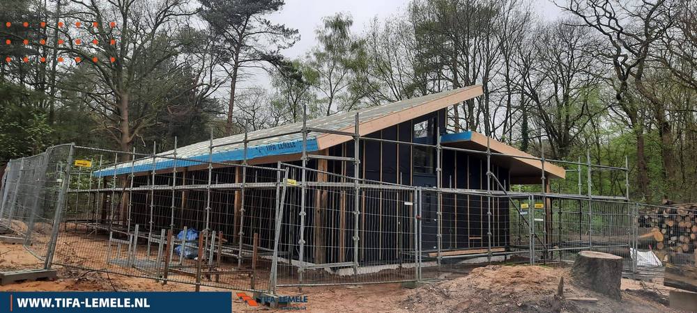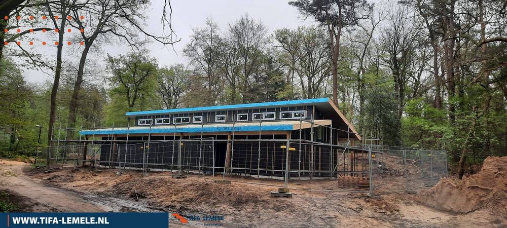 Nadat het gebouw is geplaatst plaatst de installateur al het leidingwerk, verlichting en technische installaties. Als laatste werkt de aannemer dan het gebouw af en kunnen we het terrein om het gebouw afwerken.