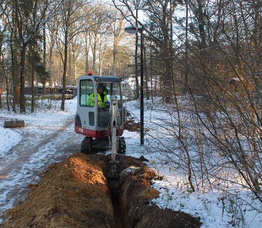 Het was een mooie zonnige, maar wel koude dag. Een echte winterse winterwerkdag dus. We pleegden vandaag bosonderhoud (zagen, kloven, opruimen) en hebben een kabel ingegraven voor internet naar het Jamboreehuis.
