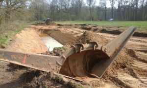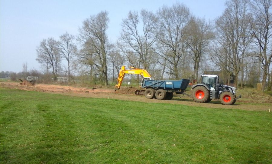 Vanaf nu kunnen we er niet meer omheen. De Koeksegeul op Gilwell Ada’s Hoeve is een feit. De aannemer is deze week begonnen met het ontgraven van het eerste profiel. Het zand wat daarbij vrij komt wordt gebruikt om Renbaan B op te hogen, de rest wordt tot het najaar in een depot geplaatst op Gulde Roede. Dit wordt gedaan om zo min mogelijk schade te maken aan het terrein zo kort voor het kampeer seizoen.