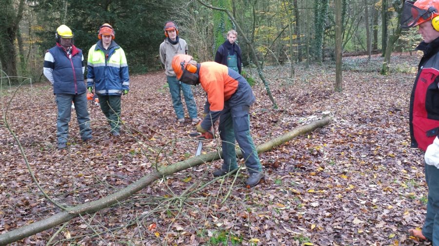 In het weekend van 21 november jl. heeft op Gilwell Ada's Hoeve de basis zaagcursus plaats gevonden, georganiseerd door het Team Labelterreinen. In twee dagen zijn de basisvaardigheden van het onderhoud van de motorzaag en het gebruik aan bod gekomen. Er was een goede mix tussen de theorie en de praktijk. Tijdens de praktijk-delen is er lichte velling gedaan van enkele bomen.