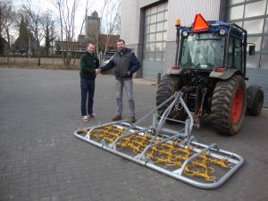 DSC03245Het nieuwe kampeerseizoen gaat er weer aankomen en dus zijn de vrijwilligers op Ada’s Hoeve druk bezig om het 40 hectare grootte terrein weer op orde te maken. Voor die werkzaamheden moesten we dit jaar op zoek naar een nieuwe weidesleep, want de oude was op. Die nieuwe weidesleep werd gevonden bij Boma Staalbouw uit Mariënberg. Daar worden weideslepen gemaakt, in diverse formaten en types.