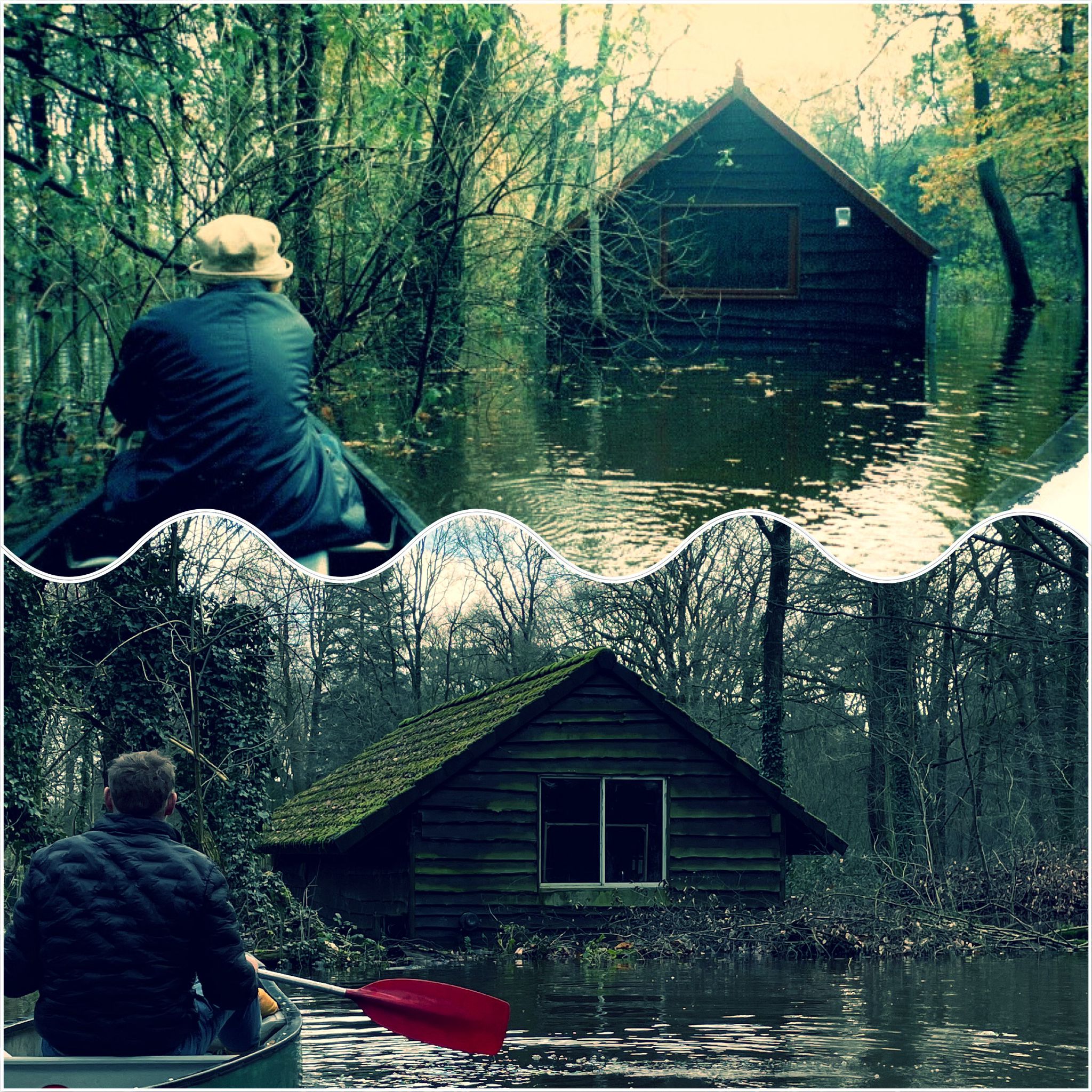 Op deze foto is te zien hoe het was in 1998 toen Laura en Henk Teunis een kano tochtje over het terrein maakten. Ronald Zijlstra deed het dit jaar nog een keer. Locatie: Trekkershut op Leidersveld 1.