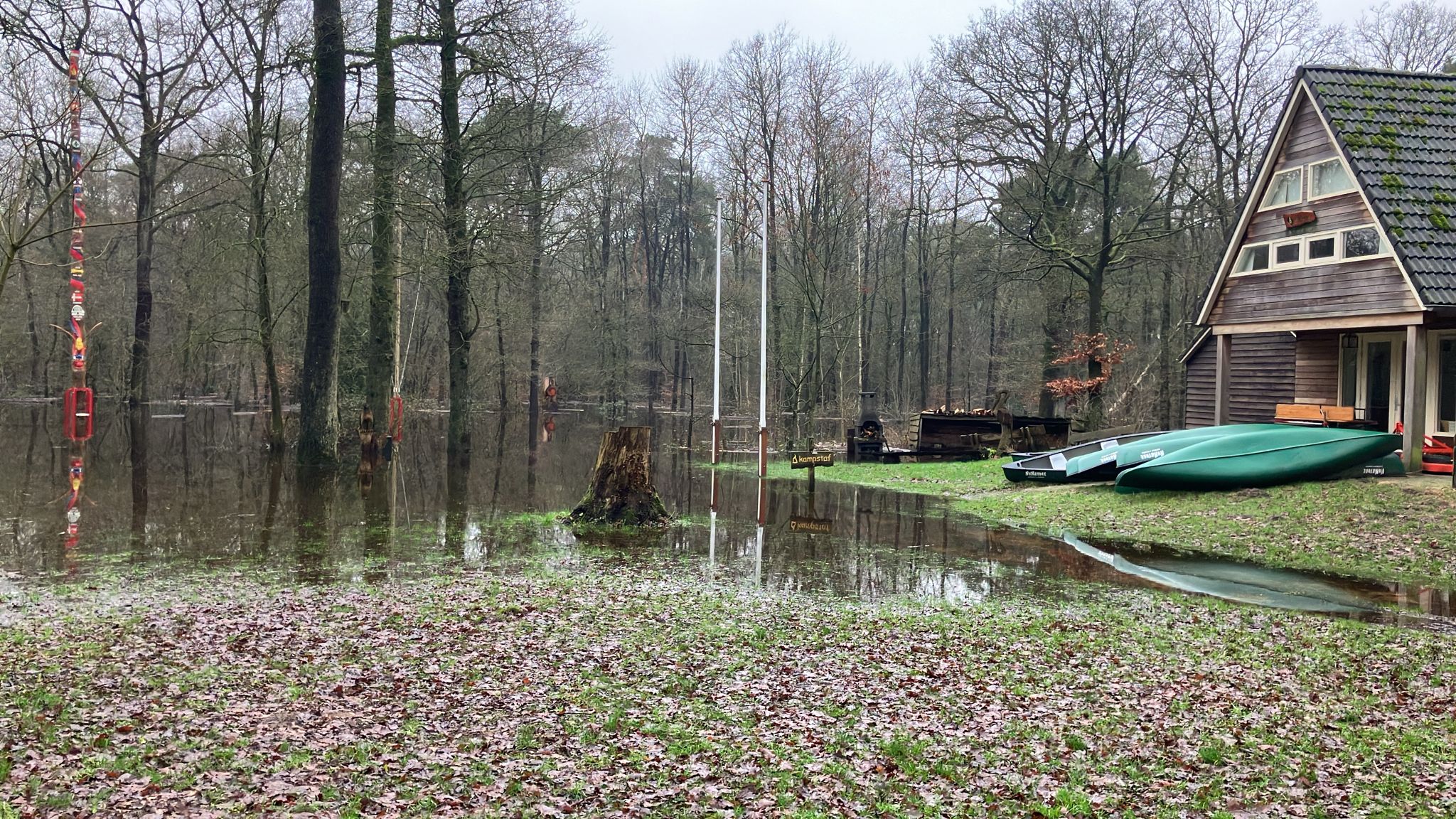 29/12: Het water staat bij het magazijn nu duidelijk lager dan (eer)gisteren. Vandaag bleek de Trekkershut PSO op Leidersveld 2 (die iets hoger staat) droog te zijn gebleven.