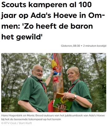 Scouts kamperen al 100 jaar op Ada's Hoeve. 'Zo heeft de baron het gewild'2023 07 artikel RTV Oost