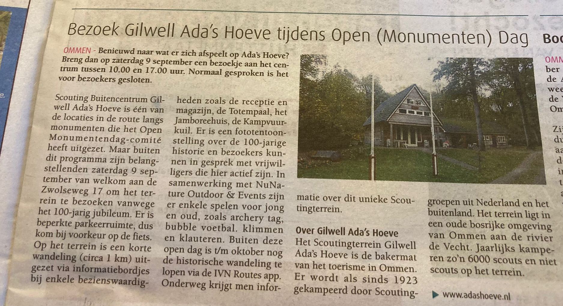 15 pagina's met foto's en een korte uitleg over 100 jaar Gilwell Ada's Hoeve.mini expo 1000px