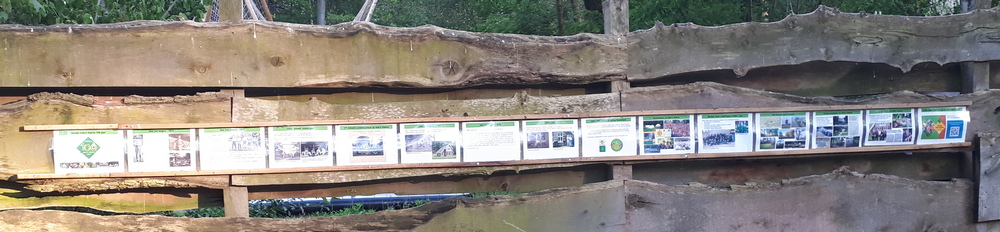Bij de ingang op het terrein aan Boerderij-zijde hangt een mini expositie van foto's ter gelegenheid van het jubileumjaar.