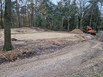 In het weekend van 18/11 werden de bomen verwijderd door het GAH zaagteam. De week erna ging Niens Multi Diensten uit Dalfsen aan de slag om de stronken te verwijderen en extra zand op te brengen. Een week later was de locatie gereed voor de bouw.