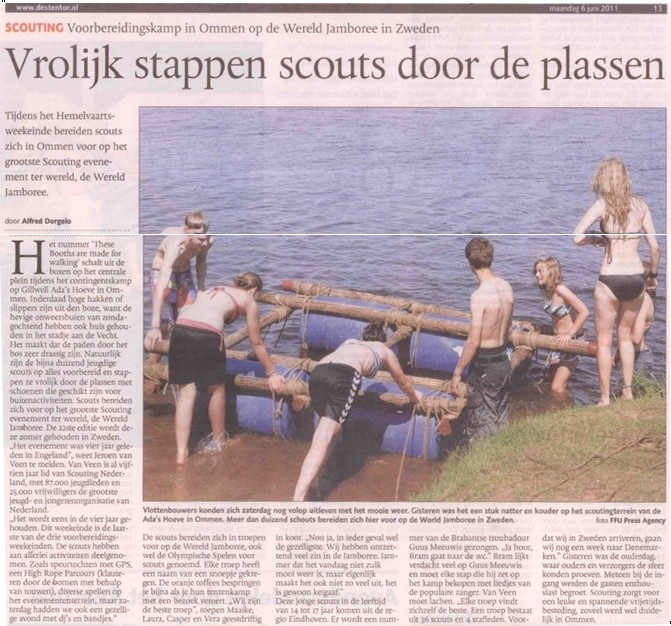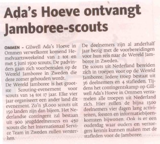Artikel uit het stadsblad n.a.v. een voorbereidingsweekend van het Nederlandse jamboree contingent.