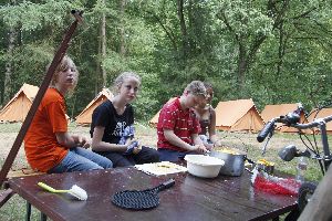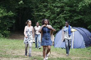 2009-07 - DZ kamp -  MG 7534-1-300pxAl sinds 1923 organiseert de studentenstam De Delftse Zwervers een kamp voor schoolkinderen uit Den Haag. Sinds eind jaren ’60 gaan er kinderen mee van basisscholen voor speciaal onderwijs uit achterstandswijken zoals de Schilderswijk in Den Haag. Deze kinderen groeien vaak op in een sociaal achtergestelde situatie en kennen meestal naast leerproblemen ook opvoedingsproblemen en ontwikkelingsachterstanden. Voor deze kinderen is het een ongekende ervaring om hun dagelijkse leefwereld in de stad in te wisselen voor het kamperen in de bosrijke omgeving van Ommen. Daar bouwen de Zwervers ieder jaar in de vroege zomer op een groot kampeerveld een tentenkamp op. Vier of vijf dagen lang kamperen de kinderen daar, en spelen ze op het veld en in de bossen.