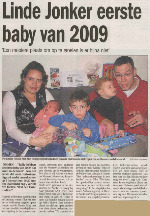 Linde in de krantLinde Jonker, de op 1 januari geboren dochter van onze beheerders Ard en Yfke staat nu al in de krant. Natuurlijk meteen een mooie gelegenheid om wat informatie over Gilwell Ada's Hoeve voor de omwonenden te geven.